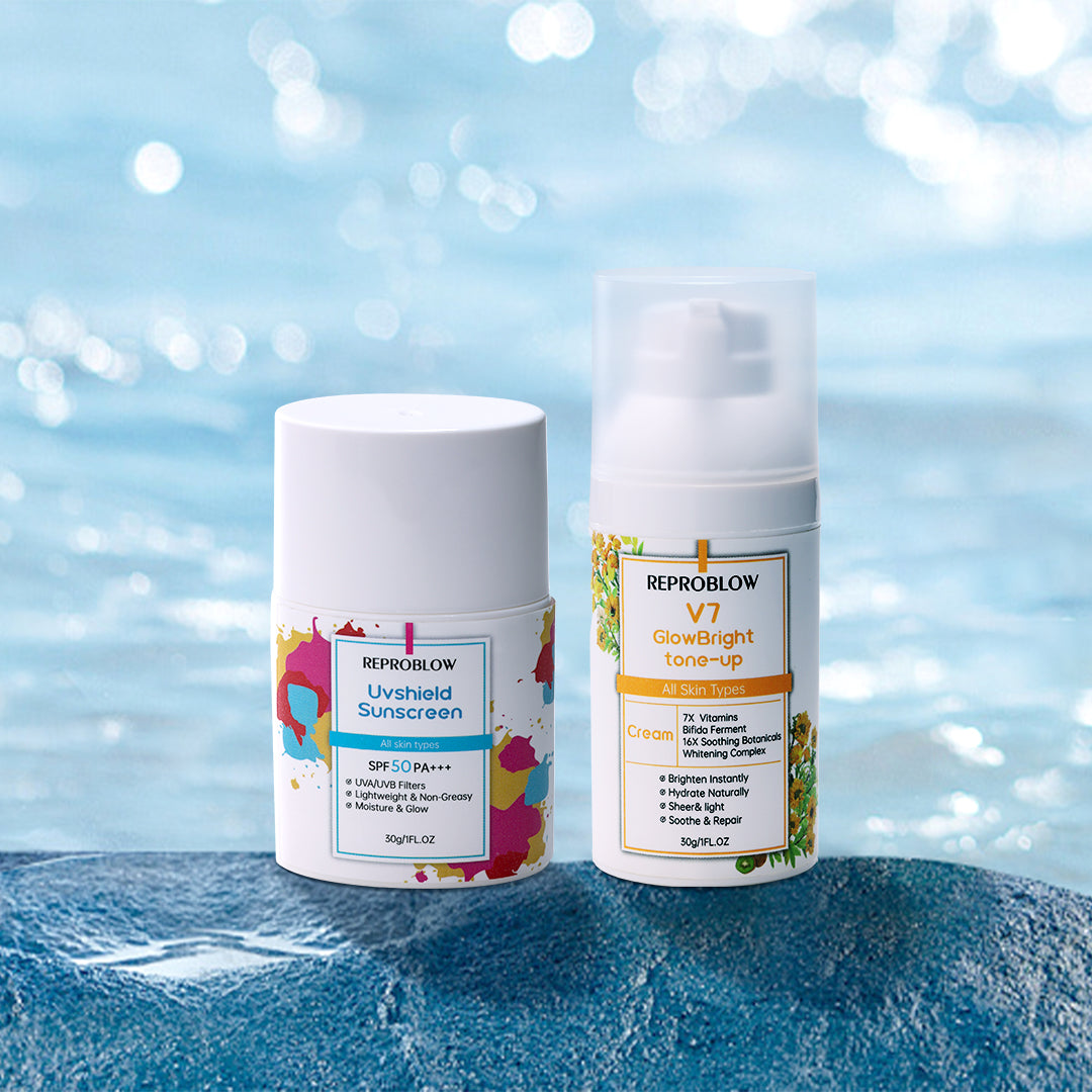 Protect and perfect your skin with the V7 GlowBright Tone-Up Cream and UVShield Sunscreen SPF50 PA+++. This duo provides hydration, evens skin tone, and shields against UV rays for all-day protection and a naturally radiant finish.